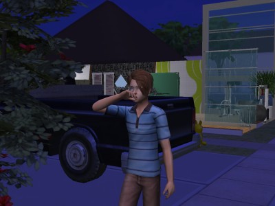 一通り遊んだ後たたずむケミちゃん 外・・・まっくらですけど