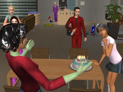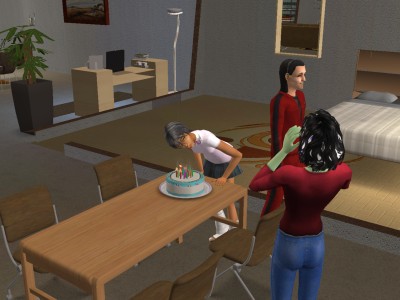 今回は抜かりなくろうそくを吹き消します 靖子「見ててよ!おじいちゃん!ミミ!」 トシ「ミミ・・・まだティーンなの・・・?」 ミミ「ほっときなさいよ」