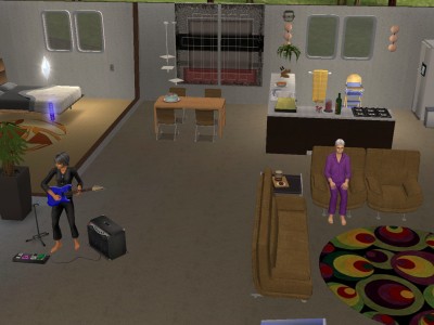待ってましたといわんばかりにギターを鳴らす靖子 それをソファに座って聞いていたサカモトちゃん
