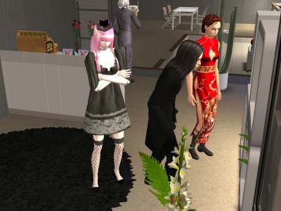 バーディ「おししょーさま、どうです?お気に召しました?」 アル「うむ、なかなかいいな」 マ族の師弟もお気に入り フラワーショップ「縦伸ばし」