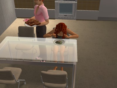 みゆき「私、この家の人間にしては友達多いのよ」(本当) 冥土「オー、それはとてもいいことダヨ〜」 敏郎「(なんで片言なんダスか)」 ちゃっかり食事に参加する敏郎