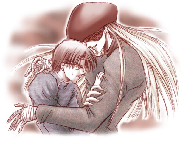 その囁きに、我に返った霧人が、毒蜂の腕の中でもがき始める。 一見細身に見える毒蜂の体は、霧人が暴れてもびくともしない。 そもそも、その身にスズメバチを寄生させている毒蜂は、一体どこまでが生体なのか。 「離せっ!」 「抱きついてきたのは君の方だよ。その台詞はつれないんじゃないかな?」 背中に回された腕は、あくまでも温かくて優しい。 だが、その感触とは裏腹に、その腕は霧人に強烈な嫌悪感を与えた。 それと同時に、自分の取ってしまった行動への悔恨と、この現状に対する焦りが頭の中で複雑に交錯する。 気に入らない人間の前で醜態を晒した挙句、よりによってその相手にしがみ付いてしまったのだ。 いくら雷への恐怖が深いとはいえ、死んでも堪えるべきだったに違いない。 やり直しも、言い訳もきかない状況に追い詰められていることを悟って、霧人の背筋を冷たいものが滑り降りた。 「可哀想にね、霧人。こんなに震えてしまって…」 労わるような言葉が、耳元で囁かれる。 だが、そう言いながらも、毒蜂の口元が笑っているのは予想できた。 見なくても分かる。 鮮やかな朱に彩られる唇は、霧人を蔑むように形作られているに違いない。 きつく拳を握り締める。 このまま毒蜂のペースに乗せられていては、ますます惨めになるだけだ。 毒蜂は『七頭目』の一人に数えられる実力者であり、今の霧人にしてみれば適う相手ではない。 しかし、霧人とて蜘蛛一族の長の子として、英才教育を受けてきたプライドがある。 そんな個人としての理由だけでなく、霧人が背負うものは大きい。 状況によっては、いつかは蜘蛛一族繁栄のために、この毒蜂を排除しなければならない時がくるかもしれない。 少なくとも、霧人が『七頭目』の一人として立つ時には、毒蜂と対等かそれ以上の立場を確保できていなくてはならないのだ。 それを考えれば、これ以上引き下がるわけにはいかなかった。 「離して…もらおうか…毒蜂」 「幼子のように震える君を、冷たく突き放すことなどできないね。それほど冷酷な人間ではないつもりだよ」 冷たい人間だからこそ、今こうして霧人の台詞に耳を貸さないのではないのだろうか。 嫌がらせなのか、ただ面白がっているだけなのか、判断のつかないところはタチが悪い。 陰湿ないじめをするような、器の小さい男ではないだろうが、毒蜂が霧人を好意的に見ていないのは間違いないはずだ。 蜘蛛一族と色々な意味で考えを異にする毒蜂は、霧人のことを快くは思っていない。 表立って何か行動を起こしたりはしないが、視線や会話にそれが滲み出ている。 むしろ対立姿勢を明らかにしてくれれば、こちらの対応も自ずと決まるのだが、毒蜂は曖昧な行動を取り続けるばかりで、尻尾を掴ませない。 腹に一物ありながらの、その計算高さが、また気に入らなかった。 「自分で歩ける」 「とてもそうは見えないが。自慢の知識も教養もハイテク技術も、今は何の役にも立たないのだよ…霧人」 そう言いながら、あやすように頭を撫でる毒蜂に、一気に血が逆流するような怒りを覚えた。 「余計なお世話だ…っ!」 迸る感情のまま、霧人が腕を振り上げる。 しかし、毒蜂に向かった拳は、届く前に掴み上げられた。 しまったと悟る前に、圧倒的な力が手首に掛かるのを感じる。 掴まれた手首が、軋んだ音を立てたように思った。 「…つっ!」 毒蜂が視界から消えたと理解した時には、骨が折れるのではないかという力で、背後に右腕を捻り上げられる。 関節に掛かる苦痛に喘ぐ霧人を、毒蜂は人形でも扱うかのように容易く引きずり、ガラスに押し付けた。 霧人の目の前に、外の風景が広がる。 「少々お行儀が悪いな。お仕置きが必要かもしれないね…」 背後からの囁きは、深い森のような静けさで、それでいて底知れぬ何かを滲ませていた。 霧人の視界に広がる風景の中で、降り止まない雨が、世界の輪郭をぼやけさせている。 墨絵のように朧げな光景の中、天空から鮮やかな光が時折見え隠れしていた。 雷雲は、まだその勢いをおさめてはいない。 血の気が一気に引いていくのを、霧人は自覚した。 その怯えを嘲笑するかのように、閃光が瞬く。 「―――…っ!」 霧人の全身が戦慄いた。 「やめろっ…やめ…っ」 目を閉じても、眩い光は容赦なく飛び込んでくる。 雷光にほんの少し遅れてやってくる轟音は、霧人の脳内を掻き回すように響き渡った。 毒蜂に片腕を捕らえられていては、完全に耳を塞ぐこともできない。 ガラスについた左手が、何かを掴むように虚しく握られているのは、右腕の関節にかかる苦痛のためではなく、瞳に焼き付く稲妻への怖れだ。 「随分と可愛い声を上げるのだね、霧人」 全身を揺らしながら、ずるずると崩れ膝をつく霧人に、毒蜂が非情な言葉を浴びせる。 「もっと鳴かせてみたくなるじゃないか…」 「な…っ…」 体を奇妙に硬直させる霧人の首筋に、するりと毒蜂の左手が這わせられた。 指先でくすぐるよう