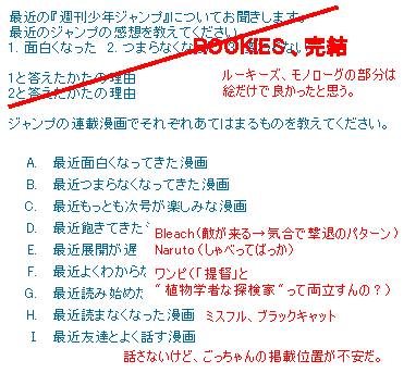 BLEACH:この人気投票、キャラクターの名前を表記してない上に番号制でもないので、岩鷲は非常に不利だと思います。字も難しいしね…。小学生は「がん」までしか読めてない可能性もあります。むしろ「いわなんとか」と記憶されているかもしれません。