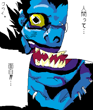 すごい名前の主人公は、頭脳戦の死闘(?)の上、やっぱり死ぬんだけど、死んだら目が飛び出て天国へも地獄へもいけずリュークになって、デスノートを人間界に落として同じようなことを繰り返す死神になるのだった。
