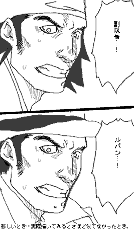 一角は、「バガボンド」の胤瞬に、ハゲなところと槍使いなところが似てると思った。あと、「ちっ…ついてねぇや」のとこの顔とか。でも、一角の方が全体的に悪そうなのであんまり似てないかも。