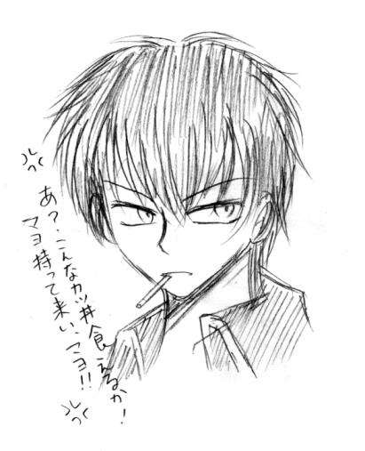 読みきりの頃からこの作者様が大好きでした ギャグセンスとキャラの濃さが堪りません(笑) WJの当時のページそのまま残してあります^^; で、沈着冷静で真面目そうに見えて、実はなかなかいいキャラしてる彼は素敵だと思います! 彼の影響で妹はマヨカツ丼食べるようになりました