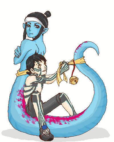 「ナーガのコレ封魔の鈴にしたら敵の悪魔出なくなるかなあ?」 「…レベルあがんねーじゃん…てゆうか重い、お前」 とかとかとか夢見すぎですか!!? 重いとか言いながらお前そのまま移動できるだろ!??(落ち着け) 他とは違う系統の美形様ですよね〜v 盾と槍はどこ行ったんでしょうねー