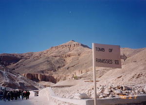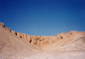 目に染みるような空の青さと、王家の谷の白い山肌とのコントラストは絶妙!