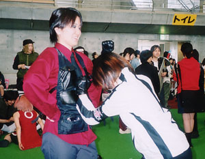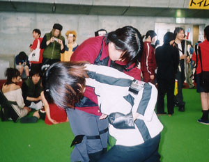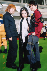 撮影日/2002年5月6日 キリト/秋月 殺 左タケオ/亜聖 雪様 右タケオ/狗居 康人 お、バッチリキメ写真!とか思ってたら、タケオがキリトのステッキを持って写ってるという、何かビミョーな一枚。 亜聖様、立ちポーズがマジ本物のタケオっぽくてステキです(熱愛←迷惑)
