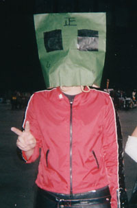 撮影日/2000年12月9日 潤/秋月 殺 タケオ/狗居 康人 恐らくPUBLIC ENEMY終了後の一枚。暗いからたぶんあってますが、記憶ほぼ皆無です(お前記憶障害なんじゃないのか) えー、この時は確かAliceの黛氏をライブに招待したんですが、わしらの猛烈に高いテンションに怯えてしまったみたいです・・・(哀) にしても何で秋月こんな解脱したかのような穏やかな(というか死んだような)顔なんだ?(ホントにな)