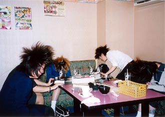 撮影日/2002年10月13日 亜聖 雪様、紫苑 楸様(オンリー腕)、黛 世梵様、秋月 殺、長原 閏 イベントの帰り、溜まりに溜まったストレスを発散するためにカラオケへ。 コレ何の曲だろう・・・CREATUREかな? ふざけて撮ったら凄い事になってたので思わずアップ(思わずてアンタ)