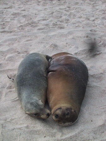 ガラパゴスアシカは、島に上陸すると、砂浜にごろごろしてながら最初に出迎えてくれます。
