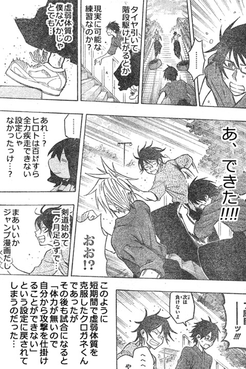 以前紹介した安価で東大目指すと意気込んでいた彼ですが どうやらセンター試験を受けてなかったことが判明、そしてそのままブログを閉じてしまったようです。 恐らく釣りだったというオチでしょうが、こういう結末は残念だね。 確かに登場人物が立ちすぎている、あたかも小説のような展開などいろいろ今考えると疑う余地があったのでしょうが。 いつかこういうので本当に達成する人でないかなぁ。電車男みたいに真偽不明な奴じゃなくて。 週刊少年ジャンプ8号感想。 ワンピ・・・うわぁーまたギャグで片付けたよ。 普通に考えて間違えて爆弾が入ってたことは言うべきなのに、イマイチ言えない理由が適当というか。 以前のサンジの出血多量の原因が鼻血という展開もありましたが、何故シリアスな原因にギャグを入れてくるのか、最近のワンピはわかりませんなあ。 とにかくようやく魚人編が終わって、一安心しています。 トリコ・・・おぉ、会長生きた。 それにここで幹部と戦わせると明らかに噛ませになっちゃうから戦闘回避したのもいいね。 でも、会長がここまで強いと、これからトリコ他が戦う理由ってあんまりなくなっちゃう気も・・・。 ナルト・・・九尾が絵に描いたようなツンデレすぎて腹が痛いwwwwww 「べ、別に今回だけ特別なんだから!」「れ、礼なんていらないわよ気持ち悪い!」←これ言ってるの、九尾なんだぜ・・・。 バクマン・・・エイジが漫画用ネーム20話分書いてきたらしいけど、それなら連載ページを毎週50ページくらいにしてストック溜めるって選択肢は無いのかな。 ゾンビがアニメにならない理由は「原作ストックが無いから」であって、エイジならその問題は解決されるでしょ。 毎週50ページは過去に荒木先生も歩んだ道だし、名実共に看板漫画がそうなればジャンプ側としても嬉しい。あら、解決しちゃった。 あ、サイコーの夢はどうでもいいです。 リボーン・・・さすがに大人リボーンの登場はかっこいいなー。 「ちゃおッス」が「カオス」だったのは連載の始めから考えていたのだろうか・・・。 てかリボーンって連載開始時とバトルしてからの流れが違いすぎて、開始時の設定とリンクしてきてる今はすごく不思議なんですよね。 全部後付けなのだろうか。当時の自分は赤ん坊家庭教師の設定を何故違和感無く受け入れたのか。うーむ。 ニセコイ・・・この漫画って登場キャラ増やしてドタバタやらないと輝かないタイプの漫画なんだな・・・。 しかし鍵を勝手にいじるのは好感度がた落ちだろー。 しかもプールの女の子の使用品を勝手に触るとかいかんだろー。(嫉妬) 【企画】鰤・・・死神代行篇、尸魂篇のルキア、破面篇の織姫まではまあ許してやろう。 死神代行消失篇のチャドはどういうことだwwwww チャドとか久々に出たと思ったら月島さんに斬られて早々に退場したイメージしかないのですが・・・。 【読切】DOPPELER・・・覚えているだろうか、普津澤画乃新先生を。 覚えているだろうか、衝撃を与えた「あの」読切を。 ![]() そう、賛否両論を巻き起こした話題作「ANAAKI'S」の作者です。 名前を見たとき、今度はどんな作品が来るかと読んだのですが・・・ うーん、なんか一言で言うと、悪い意味で角が取れた感じ。 以前の「ANAAKI'S」は話はともかく、個性丸出しの世界観が売りだったはずなんですよ。 ところが今回は何を売りにしているのかが全く分からない読切。 世界観?設定が普通すぎるし、ホラーなのか軽いノリなのかわからない。 緊迫感も何となく全体的なノリの軽さのためか感じられない。 絵も勢い無いし、主人公以外のキャラが全く掘り下げてないからヒロインのピンチも盛り上がらないし。 恐らく最大の見せ場である「ドッペルゲンガーVSドッペルゲンガー」もあっけなく終わったしね。 これならたとえ叩かれようとも以前のめちゃくちゃな作風のほうが良いと思いますよ。マジで。 パッキー・・・相変わらずワンダーの塊のような漫画だ! タケル父確かにこのご時世に一軒家を買うくらいなんだからそれなりに優秀なんだな・・・。 猛る乳のOLは是非ともレギュラーキャラにしてください!!!! 孫・・・先入観で退治される存在の妖怪側が味方ってのは、改めて面白いね。 今戦ってるのは、妖怪を退治する人間だからね。 クロガネ・・・おぉ、またテニヌ的な新キャラ。 そのうち剣道なのに空飛んだりする日も近いぞ。 マジコ・・・これ一人をガイコツから戻しておけば鼻血でシオン動けないよね。 つまりその方向でお願いしたいですね。岩本先生ご検討お願いします。 鏡・・・告白→成就→記憶飛ぶの問題は残ってていよいよ告白。 クライマックスは近いのだろうか。 犬丸・・・サザエさんと一年中じゃんけんしたあなたと同じ趣味の人いますよ!男の先生!(名前忘れた) めだか・・・最初から失格って、結構あると思うんだけどどうなんでしょう。 ハンター・・・うぅ〜ん、チードルがレオリオ推薦とは、パリストンの笑顔を消すた