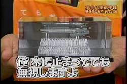 これかけてると雨で濡れちゃったりするから普通はかけないと思うんだけど・・・。やらせ?