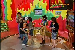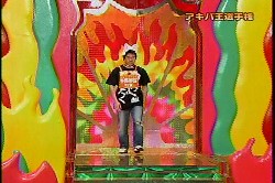 猫耳をつけるチャンピオンとそれをみて固まる松本明子。