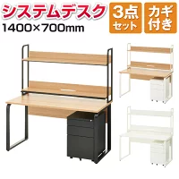 【法人様限定】メティオ オフィスデスク 事務机 1400×700 + ワゴン 3段 幅400mm + 机上ラック ハイタイプ セットオフィスデスク 引き出し ワークデスク システムデスク 机 デスク 木製 140×70 幅140cm