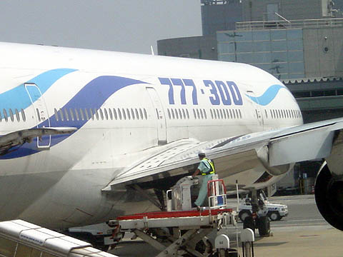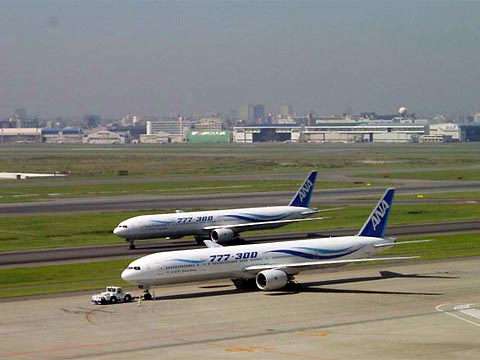 5/3 羽田空港にて 基本的にANA側からしか見ないし、撮らない。つまり全日空が好きだから。特に、この「B777-300」の塗装が気に入ってまして。 今はバードアイ全体に高い柵が取り付けられてしまいましたので、こんな写真は撮れなくなってしまいました。撮りたいマニアの事も考えて欲しかった。って言うのはわがままでしょうか? これは写ってる7機が全部ANA機なので、結構気に入ってます。 |