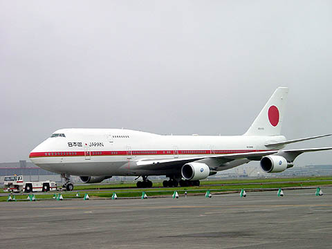 千歳当日 過去の噂では政府専用機内も見せて貰えたらしいのですが、今年は外から見るだけでした。しかも1101だった。お天気が良ければ1102がフライトを見せてくれたはずだったのに・・と、ちょっと(いや、かなり)残念でした。 羽田でも運良く見られてもあまり近くでは撮れない機体だけに「さすが千歳」と、感激もひとしお。フライトがなかろうが、小雨が降ろうが実際に本拠地に来て見ただけは心のお宝になりました、 |