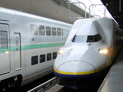 松島行きのMAXやまびこ 仙台へは新幹線を使いますが、東京駅の新幹線のホームに行くと・・ついデジカメを鞄から出して撮ってしまいます。「鉄ちゃん」までは行かないけれど、新幹線は好きでよく撮ります。 好きなのは「500系のぞみ」とか「こまち」あたり。後、そこに居ればMAXでも700系でも撮っておきます。なかなか新幹線に乗る機会もないし。 航空祭がメインのはずなんですが、駅からもうすでに「舞い上がりモード」です。人が入る写真は好きじゃないので、人が多い駅は撮るのがけっこう難しいんですよ。 |