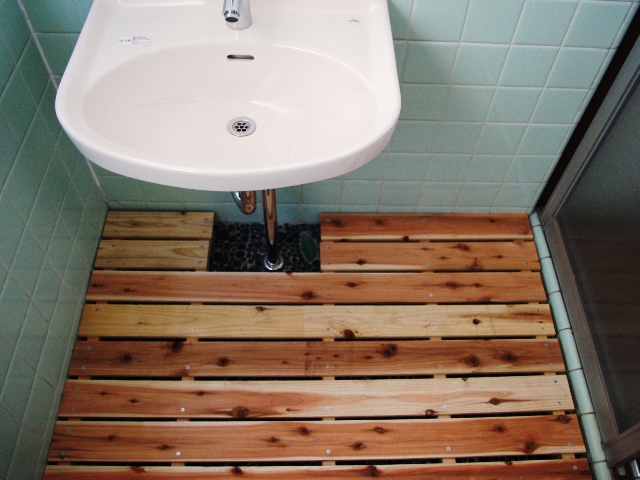 工務店の作業が進んで、軒先とトイレと浴槽がきれいになった。 貸家なので、掃除し易い方が好まれるだろうと思い、 温水便座等は付けずシンプルな便器にした。 トイレは壁紙を貼ってもらったので今後の作業の手本にする。 トイレのドアは自分で。 明るい色に塗り直して、ちょっと見栄えのいいノブに交換した。 気持ちを仕切り直して、2部屋目に取り掛かる。 最初に畳を上げた1階の6畳。 ふすまを外し、再び畳を上げて掃除する。 天井のホコリを払い、 柱もきれいに拭き上げ、 クモの巣が架かった押入れを隅々まで清掃。 家の外に積み上げてあった予備の瓦が目障りだったので、 一枚づつ汚れを落として床下に並べて仕舞う。 結構いい運動になってしまった。 繊維壁に強化剤をスプレーし、柱を塗る。 妻も参戦して、壁紙貼りもペースアップ。 畳を戻してふすまの張替えに挑戦。 無地の真っ白なふすまに。 3部屋目も1階の6畳。 畳を上げて掃除して…以下同文。 収納の扉を黄土色に塗った。 柱は茶色、ふすまは白、壁は白、 という基本的な色使いが確定。 キッチン