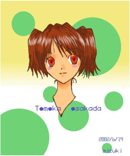 小坂田 朋香 ちゃっちいですねv 背景ヘボヘボ…首までしかないイラストが何故こんなにでかくなるのか。 不思議ですね。(そうか?) スキャナで取り込んだのをちまちまタブレットで清書。 なんか初めて使うせいかえらくつかれました。 ふう。