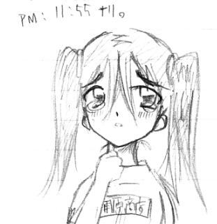 落書き第三弾 えーと…。 今度はえらく小さいです; この落書きの紙にはご丁寧に日付が書いてありました。 11/27…全体には11/26と書いているので どうやら描いてる時に日付が変わった模様。 ヘタレ絵ですね〜; 確か資料なしで描いてたんで、ゴッキー頭が不完全ですね。 そして泣き。 私のイメージはウルル=泣き虫でいつでも目に涙だったようです。 それよりもPM:11:55ナリとか書いてもねぇ水城さん。 描き始めはまだ26日だったとかそれくらいしか役目がない書き込み。 あ、下の方にサララちゃんは?とか書いてやがる!!! |