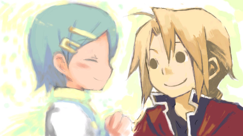 かわいい絵を発信しまくりのえん吉さんと絵茶! えん吉さんとは初めての絵茶だったので、ドキドキしっぱなしでした。 お互いの手が緊張で震えてることを確認して(?)絵茶! ![]() メイドさんです! ココが「オリジナル描けないんですけど」って言ったら えん吉さんから「メイドは大丈夫でしょう」とのお返事。ただ者ではないと思いました(ゴクリ) で、えん吉さん描くのが、めちゃくちゃ早いんですよ!! しかも厚塗り!今まで絵茶で厚塗りしたことのないココは、大いに焦ったというorz んで、えん吉さんの色遣いの素晴らしさに感動しつつ ココは、えん吉さんの服の色とかパクってたという(マジ死ね) 次に版権どうですかね〜ってことで ![]() エドとエウレカ! わははは、えん吉さんのエウレカぁぁっっ(大興奮) 変な組み合わせですが、言い出しっぺはまぁ当然ながらココです(死) 以前から、えん吉さんのエウレカに恋してたココは、どうしてもこの日えん吉さんのエウレカが生で見たかったワケで。 でも、ココはエウレカキャラを書き慣れてなくて、したら、えん吉さんは鋼も知ってるという! で、ココは組み合わせを考えず、まんまと書き慣れたエドを描いたというね。誰か天罰ください。 そして、次は最後の絵!と決めて ここでえん吉さんが、締めはアリスで行きますかと! ![]() もうマジでかわいすぎだからーーーっ(鼻血) ダブルアリス最高!まぢたまらんかったです、制作中スクリーンショット撮りまくってましたごめんなさい(殴) えん吉さんのアリコは当然として、猫もかわえぇ目に突っ込んでも痛くないとはまさにコレ! 今回の絵茶はとにかく収穫が大きかったです、まず水彩ですね! えん吉さんの見よう見まねで使ってみたわけですが、すごく楽しかったです! 鉛筆ツールばっか使わずに、今度絵茶する機会があったら水彩使ってみようと心に誓ってみたりらり。 奥が深いぜタカミン絵茶! そして、えん吉さんの人柄の美味しさを知りました(にこり) もうほんっっっと素晴らしい時間をありがとうございました!! |