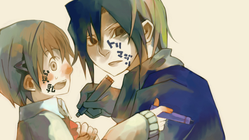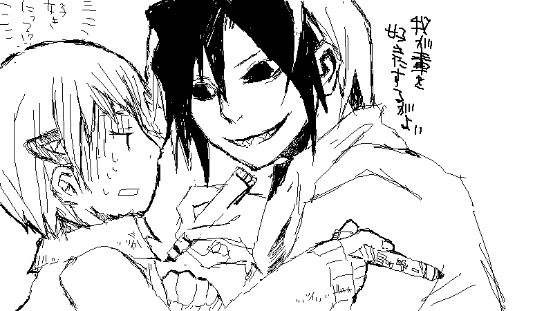 ニャンニャンしてるーー!!!!(鼻血) お互いの顔に猫ヒゲ描いて、ニャンニャンしてますよこの人達!!!! ヘタレネウロもかっこよく塗ってもらって…うぅぅ(感無量) うわーありがとわーわーわーヽ(´▽`)ノ で、ついで・にココの落書きネウロ。 ![]() 普通すぎですね(かえるさんに勝ってるのは画像サイズだけ) 「ずんどう」かで迷ったんですけど、ネウロから送られるこれらの単語ってすっごい奥深いと思うんですよ! 何で知ってるの?確かめたの?どうやって確かめたの、ヤコちゃんをどうした何したの、それより貧乳好きなのそうでしょネウロ??みたいな!な! は〜、こんな安直じゃなくて、かえるさんのような捻った妄想力が欲しいです(´・ω・`) ということで、もう素晴らしく力の差を見せつけてくれてありがとうございました! |