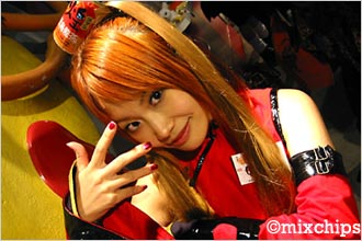 一番派手派手しく見えるジャム!この衣装かなりお気に入りです。これで戦闘が本当にできるかどうかはおいといて。ちょうど金髪にしていたときなんで、えーいもうきんぱでやっちまえ!と付け毛もキンパをえらんでしまいました。で、ウーロン茶のカンカンもファンにして、赤と金と黒でかためてみると、結構しまったかんじに!あとチャイナっぽさもぐっとアップしました。このときはゲストとして呼ばれていたのでゲスト証が胸に・・・笑