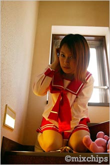 志保ちゃんだと意識しないで、ただの制服撮影だと思って。こわもて。