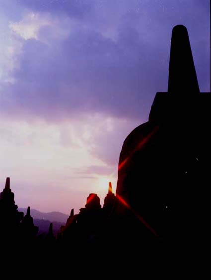 子供の頃、ジャワ島のジャングルに眠るなぞの遺跡・・・と、本に紹介されていて『一度行きたい・・・』と思っていた場所・・・今はユネスコにより修復され、ジャングルも姿を消していたが・・・ 遺跡公園内の『マノハラ』ホテルに部屋が取れたので、真昼・夕暮れ・早朝と心行くまで眺められた・・・ 招待してくれた娘に感謝!くっついてきてくれた次男坊にも感謝!