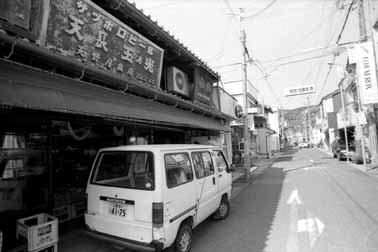 間口がせまく平均三間ほど、奥行きが十五間あまりとか、日本の古い町特有のうなぎの寝床である。