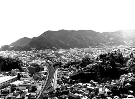 今時に白黒写真・・・JRの右側井戸町は昭和40年頃まで田と沼だった。木本町はカラーの時代になってもあまり変わっていない。