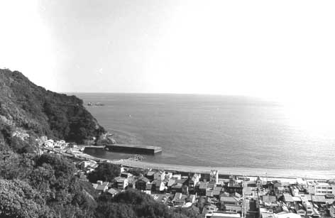 平地の少ない紀州南部の地形で、前は太平洋、後は急峻な山である。海岸から山まで1Kmもない地形である。