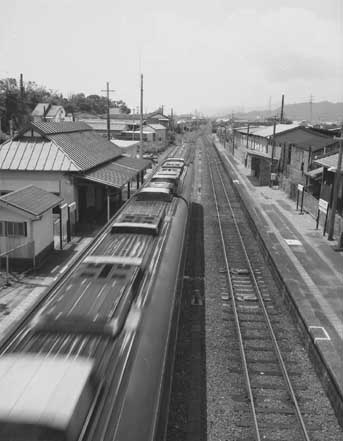 | ローカルの駅の撮影には人物をよける事は考えなくて良い。 通学時間以外はほとんど誰も降りてこないから・・・ 走り去るのは各駅停車。この列車では珍しく老夫婦が下りてこられた。『ご苦労さん』と、声をかけて出て行かれた。 |