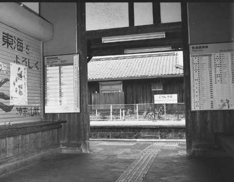 紀勢線神志山駅・・・趣のある無人駅である。駅員のいた頃にはすれ違い駅だあったので、構内は複線になり、弧線橋も備えられている。しかし、今は一日に何人がこの橋を渡るのだろう。駅舎の前にはこんもりとしたロータリーもあり、玄関の軒裏には杉皮を使う懲りようである。