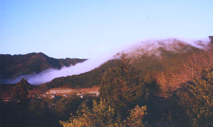 風の無い寒い冬の朝、紀和町側から、風伝峠を越えて朝霧が一気に駆け下りる・・・ 無線の移動の際、偶然にでくわした・・・ Minolta α 7700i 標準ズーム Fuji Color