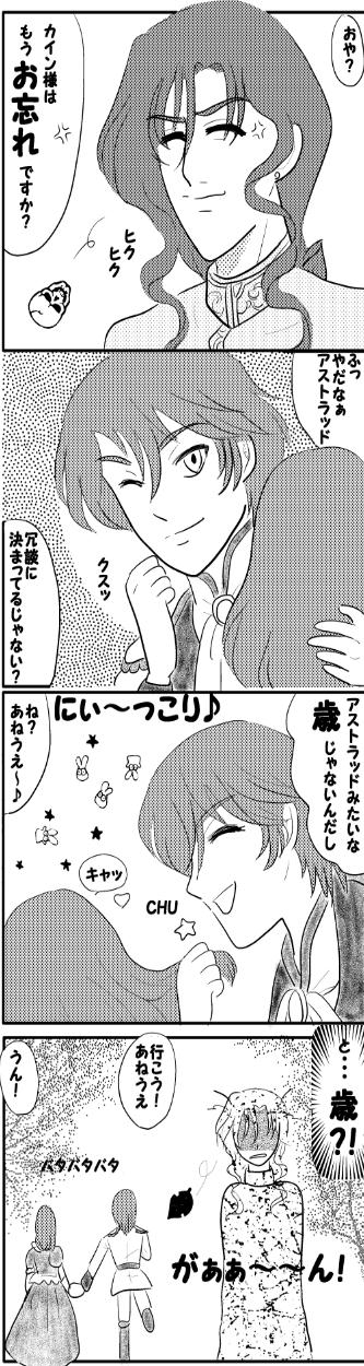 え〜と・・・ またまた実弟(黒)カインとアストラッドおじさんです(こらこら) 何気に前作と続いております(汗) アストラッドも何気に被害者に続けてなってます。 ホントに何気に描いたので他意は全く無いんですよぉ〜(焦)