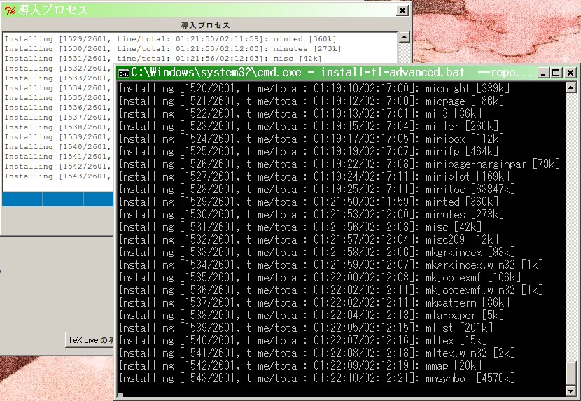 さて、インストール作業ですが、TeX Wikiに既に詳しい説明があります。ここで説明するよりもあちらを参照した方が正確で分かりやすいでしょうから、以下を参照してください。