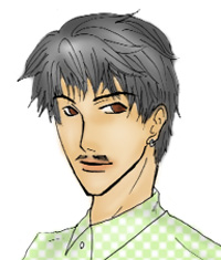 | 外見 | 細く黒い短めの髪を、ワックスでくしゅっとさせている。勤務時はオールバック。 若干つり目で細い奥二重。瞳は濃い茶色。唇は薄め。口ひげがちょっぴりあるが店や身内には大不評。 骨は細めだが、筋肉は頑張ってそれなりにつけている。でも所詮それなり。 服は着れればいいのでこだわりがない。派手な服はあまり着ない。 左手首には革ベルトの腕時計。左耳にシンプルなシルバーのリングピアス。気が向けば色の付いたサングラス。 |