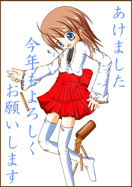 年賀状No.3 実は背景も描いてたりしてましたw あまりにもへぼへぼなので消したら まっちろくなっちゃった、と。 ・・・えへ(屍 _で、その背景付きってのがこちらとこちらです Back □ GALLERY □ Next