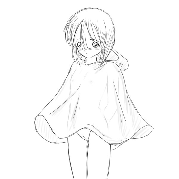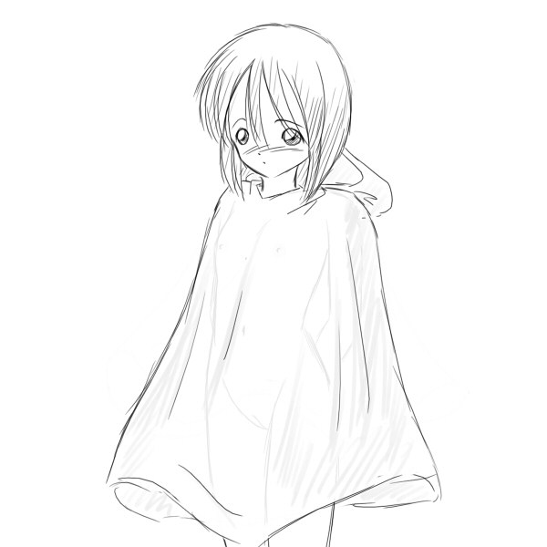 きのうのチャットで少し話題になった「裸にポンチョ」を描いたものをこちらに載せておきます。 雨の日は、制服が濡れるといけないから、制服を脱いでこのポンチョだけを着て登校……というような話に発展しました。
