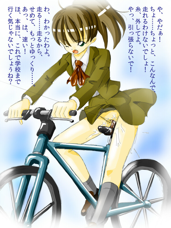 随分と更新が滞っているので、2年ほど前に描いた絵の発掘などをしていました。 何かの罰ゲームでバイブ自転車に乗せられて、クリを引かれながら登校させられている女の子……です。 この子は、このまま学校まで本当にたどり着けるのでしょうか?