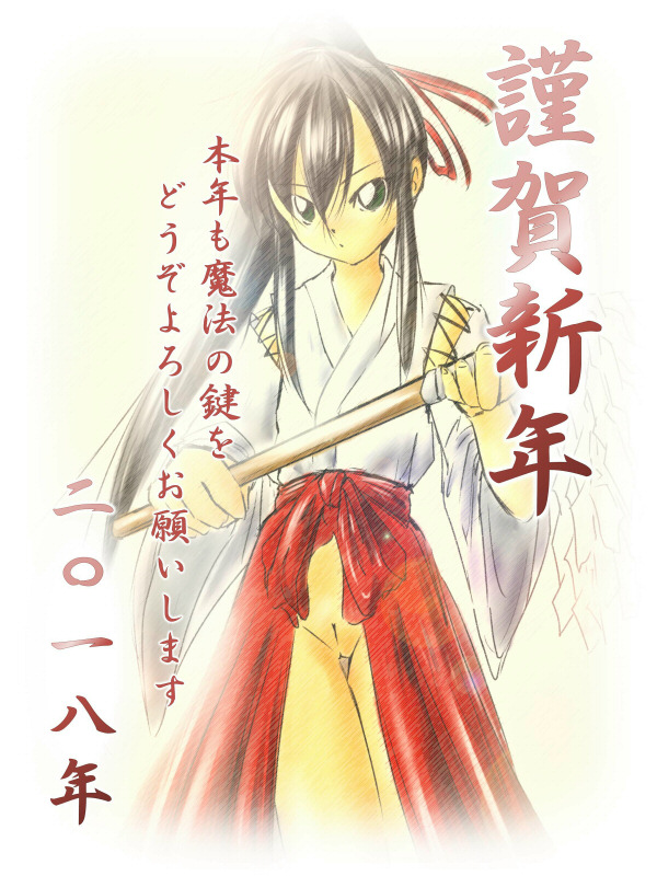 イラストは、新年の「ごあいさつ」ということで、巫女さんを描いてみました。 この神社の巫女装束は緋袴の前面中央が大きくくり抜かれ、巫女のアソコの割れ目を完全に露出させる格好が正装となっています(笑) 巫女は、参拝に訪れた人みんなにアソコの割れ目を見せるのが、この神社の習わしです。 こんな神社に初詣に行ってみたいものですね♪