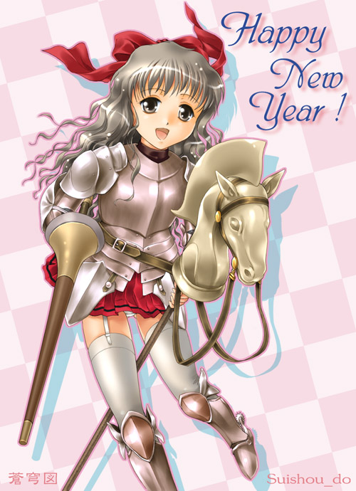 お馬さん(?)に跨った甲冑姿の少女です。 今、まさに初陣っていう感じですが、上半身の重厚さに比べて、腰回りの軽装なこと・・・。 このアンバランスさがいいですね。 睡さん、今年もよろしくお願いいたします。 おまけ新春校内かくし芸大会? |