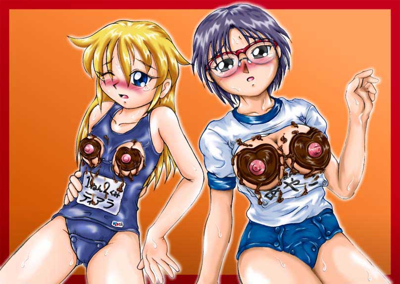 登場人物は、元はさんの投稿小説「催眠TV」に出てくる枡田彩子ちゃんと、そしてもうひとり、オリジナルキャラクターのティアラ・ロムソートちゃん(仮名)です。 巨乳少女の彩子ちゃんと、それとは対照的な貧乳外国人留学生のティアラちゃんの共演で、見事にデコレートされたチョコレートを見せてくださっています。 しかも、その身に着けているのは、ブルマ体操服&紺色スクール水着! 加えて、なにやら衣装の下半身のつくりが妖しげ(笑) これには一体どんな仕掛けがあるのでしょう? さらにこのCGには、「チョコのメイキング」の連作も・・・。 その1 その2 その3 その4(完成) 少しずつきれいにチョコレートに飾られていく2人の胸元がかわいいです。 いなつきほなみさん、すばらしいバレンタインCGを贈ってくださり、ありがとうございます。 |