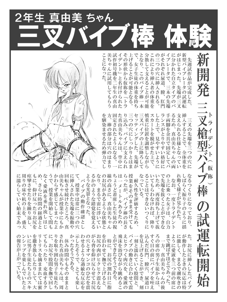 自分の席の椅子が取り払われ、代わりにそびえ立つ1本の凶悪なバイブ棒を目にした真由美は、嫌な予感に襲われながらも、決して逃れることはできないであろうことを、長きに渡る学園生活の中で心と身体に覚え込まされていた。