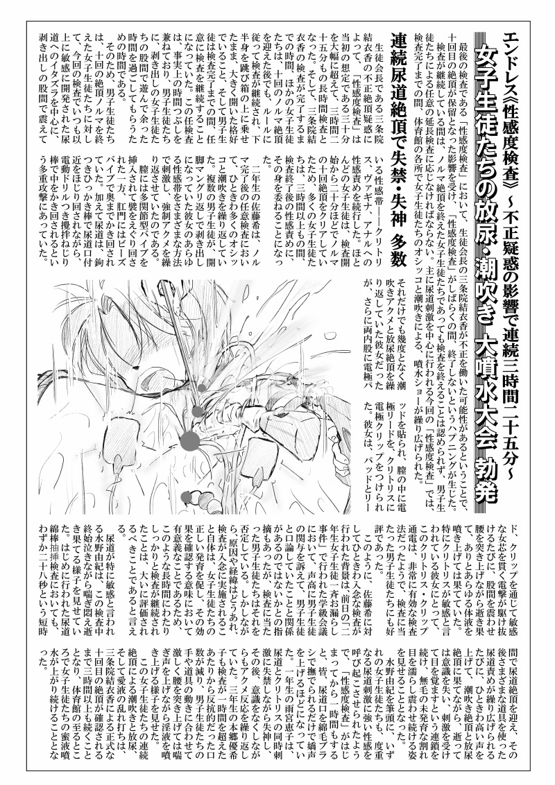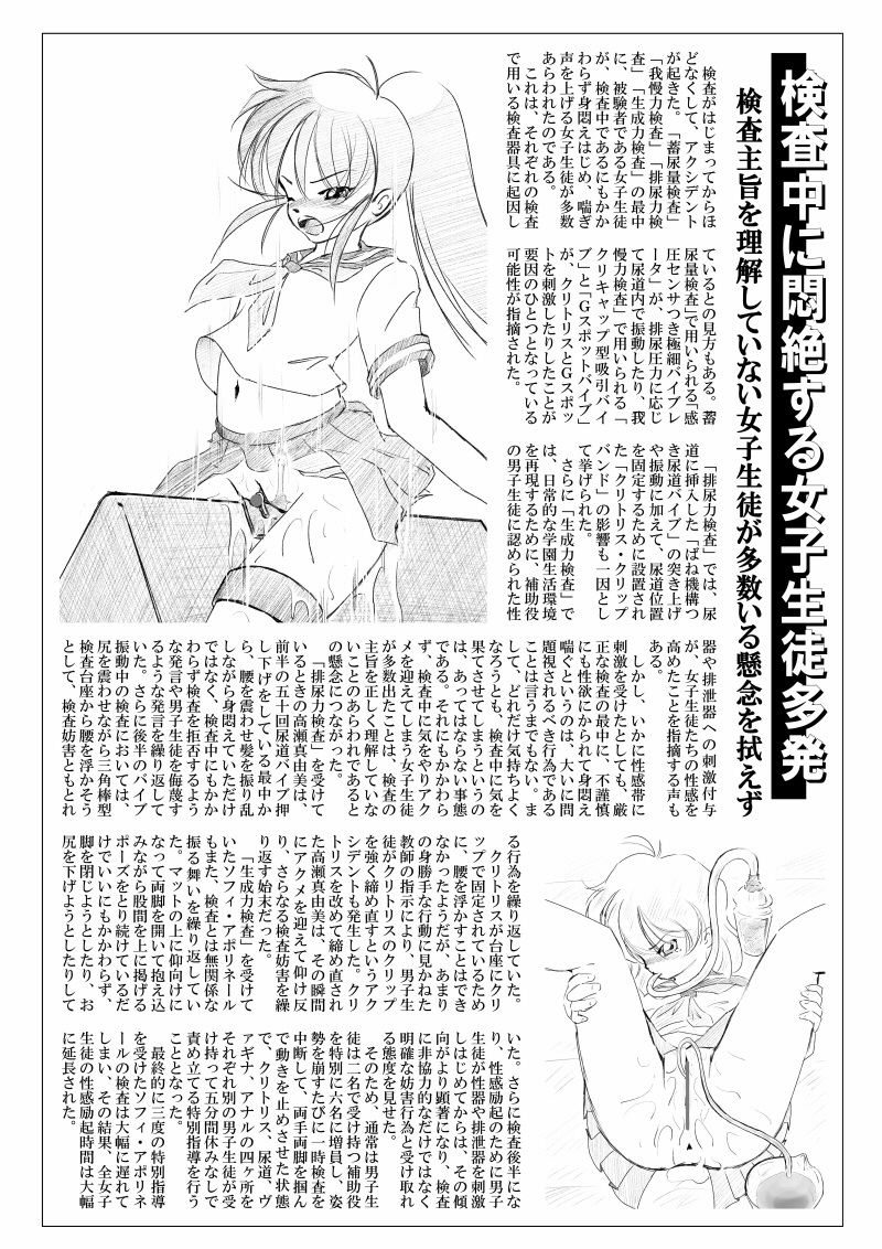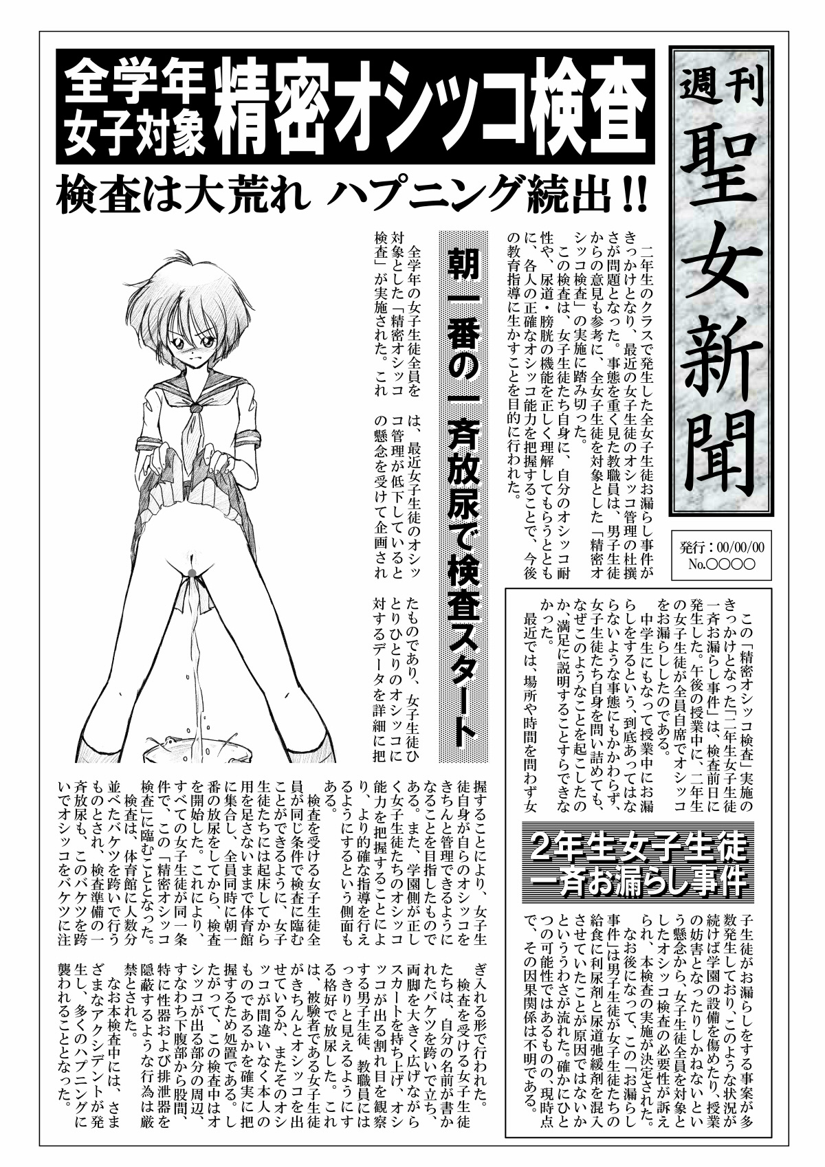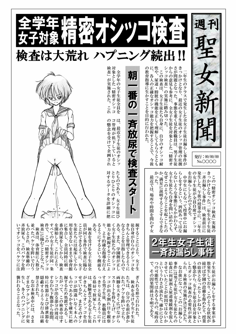 女子生徒全員を対象とした「精密オシッコ検査」が実施された翌日、聖女学園の掲示板にその検査の様子を記事にした校内新聞「週刊 聖女新聞」が掲示された。