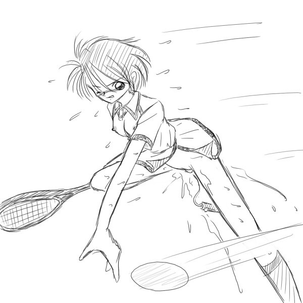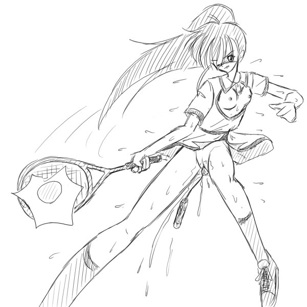 しかし、そんな極限恥辱状態にあるとはとても思えないようなフットワークで、真由美と希は、コートを駆け回り、ラケットを手にボールを打ち返している。