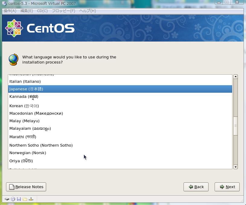 | 「Japanese(日本語)」を選択して「Next」を押下します。 | |||||||||